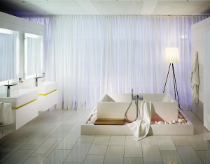 浴室在各個(gè)家居空間中,稱得上是人在其中能夠呈現(xiàn)最放松狀態(tài)的空間之一,因此在浴室設(shè)計(jì)方面,追求能夠令人松弛的效果也是即將到來的浴室主流風(fēng)格之一。體現(xiàn)這種趨勢(shì),除了浴室空間的色彩組合搭配,更重要的是各種潔具及配件能夠從不同的角度真正為人們帶來充滿人性化的、方便舒適的使用效果。