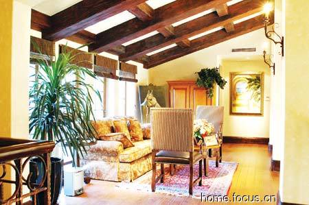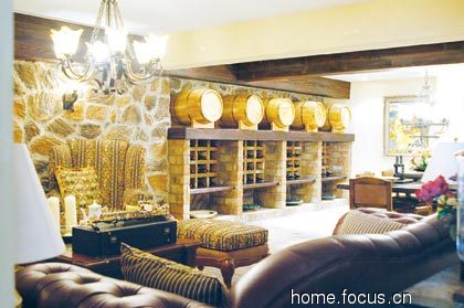 Peter之所以喜歡這種風(fēng)格,一個主要的原因就是其對原始材料的運(yùn)用,使用考究的原始材料是近幾年來品質(zhì)裝修很注重的一點(diǎn)。這棟房子所用的裝飾材料均以質(zhì)地較粗糙的天然材料為主,如儲藏室中用紅磚壘成的酒柜、用毛石裝飾的墻面以及頂樓的實(shí)木吊頂和紋理清晰的實(shí)木櫥柜。這些都使得整個空間大氣奔放、氣度不凡。