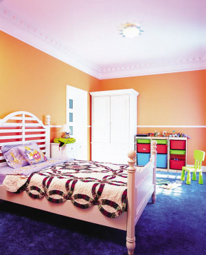 兒童房的色彩應(yīng)豐富多彩,簡(jiǎn)潔明快,滿足孩子對(duì)新鮮事物的想象,創(chuàng)造亦幻亦真的夢(mèng)想天堂。淺粉色、天藍(lán)色、翠綠色等顏色都是比較常用的。