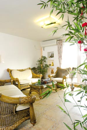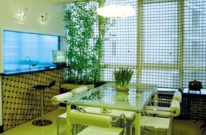 此外,花木布置還要考慮房間的光照條件,枝葉過(guò)密的花卉若放置不當(dāng),可能會(huì)給室內(nèi)造成大片陰影,所以一般高大的木本觀葉植物宜放在墻角、櫥柜邊或沙發(fā)后,使它們的上部伸出來(lái),改變空間的形態(tài)和氣氛。