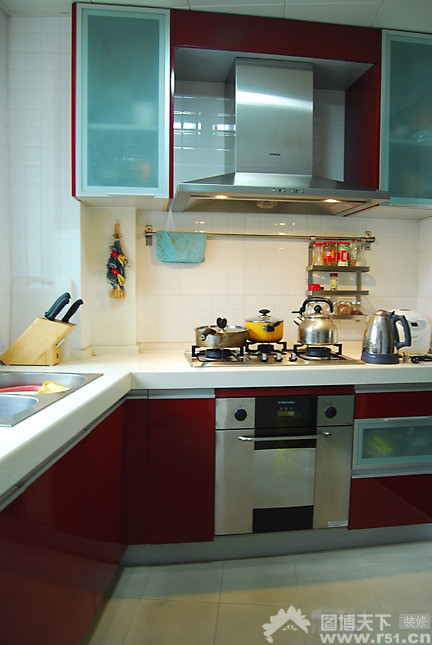 一套櫥柜的材料和五金的配置將決定櫥柜的設(shè)計風(fēng)格,保障它的使用功能,無論廚房大小,建議您選用相對成熟或比較知名的正廠產(chǎn)品。隆森銷售負責(zé)人孔飛介紹說,在門板材料的選擇上,由于烤漆和其他較奢華的材料都需要足夠的展示空間才能達到預(yù)期的效果,所以建議小戶型業(yè)主選用愛普板,它不但達到了歐洲E1級環(huán)保要求,而且具有耐火、防潮等特性,非常適合家居廚房使用。臺面則建議選用可隨意切割的人造石或者價廉物美的防火板。同樣是由于空間上的限制,在滿足基本的使用功能后,小廚房的儲物空間往往會顯得比較緊張,個頭夠大才產(chǎn)生足夠吸力的歐式煙機就略顯多余,中式深型煙機就更加符合中國小廚房的要求,不但省錢,同時可以增加吊柜,擴大儲物空間。