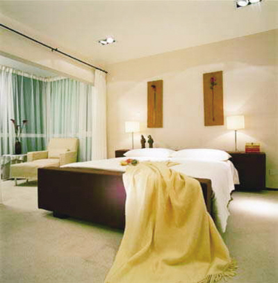 專家認為,老人房的裝修舒適性不容忽視。因此,老人的臥房應盡量安排在朝陽的房間,因為老人喜陽;另一方面中國人在風水上會選擇接受陽光較好的房間給老人,讓老人有更多的時間和機會坐在家中就可以享受陽光。同時,隨著年齡的增長,老年人夜間如廁的次數(shù)會有所增加,再加上老年人視力一般有所衰退,因此對于老人房的燈光設計,特別是夜間照明,是不容忽視的。老人的視覺系統(tǒng)不喜歡受到過強的刺激,所以老人房間的配色以柔和淡雅的同色系配置為佳,也可采用全面配套凝重沉穩(wěn)的天然材質(zhì)。