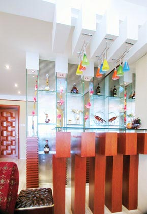 如果說開放式廚房已然尋常,透明衛(wèi)生間也不少見,可透明的書房卻很少在大戶型里見到。設(shè)計師并沒有像處理小戶型空間不足問題那樣將書房直接設(shè)在客廳里,擺個書架了事,而是保證書房原有位置不變,只是將其墻體打開做成了玻璃的,這樣做不僅保留了原有的功能區(qū),還使整體空間的通透性得到了貫徹。另一個值得借鑒的設(shè)計,是在書房的玻璃墻與廚房相對的位置上用木板隔出了一塊區(qū)域,這樣不僅冰箱有地方放了,整個玻璃墻還不顯得單調(diào)。