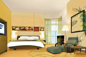墻面用墻紙裝飾。電視柜是可以移動(dòng)的。根據(jù)老人家的習(xí)慣,設(shè)計(jì)了一張?zhí)梢?,仍然選用了現(xiàn)代布藝。床也是為了讓老人睡眠更舒適,選用了現(xiàn)代簡(jiǎn)約的床架。天花很簡(jiǎn)單,沒有過多造型,簡(jiǎn)單裝上筒燈。地面擺放一落地?zé)?,?duì)喜歡睡躺椅的老人更方便。