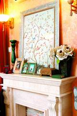 搭配沙發(fā)的色彩,茶幾、矮柜等也全是深色系的。有種渾然一體的感覺。它們的組合,構(gòu)成了默契與和諧。中間的米黃色 大理石壁爐仿佛成了一道緩沖,使不同的情緒得到自然的轉(zhuǎn)換。電視矮柜邊靠在墻角的一組中式桌椅,是文革中保留下來的,別致古樸,仿佛在述說著往事。燙花的椅面上依然存留著舊日的余溫,縈久而彌香。10年前,她從祖母那里繼承了它們。古典與時尚相互參照,和諧共存。