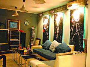 ▲墻面:空中閣樓家庭公社點(diǎn)評:裝修的時(shí)候客廳外沿處加了一個(gè)閣樓,楊先生在這塊墻面上加了一塊玻璃,里面插了一些塑料竹子,這樣就很好地掩蓋了墻面原有的缺陷。