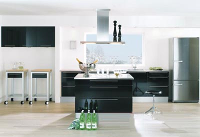 這款舒適的櫥柜安裝有黑色高光防火板門板。這個款型中,我們并沒有節(jié)省任何材料,然而價格卻更低。黑色和不銹鋼的組合,易顯經(jīng)久不衰的高雅。
