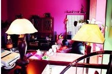 走進(jìn)DANIEL的家,你的第一感覺會是暗。沙發(fā)、家具等都隱匿在深紅暗綠之中,就像剛走入黑暗,眼睛還不適應(yīng)似的。幾十秒后,屋里的一切才開始豁然開朗。DANIEL說,這是冬日上午十點的陽光還未能完全覆蓋這個寬闊的客廳兼書房(錯層的廳被主人設(shè)計成一個開放式的書房)的緣故,所以房間給人的感覺比較沉靜,但隨著太陽的不斷移動,這個房間將會呈現(xiàn)不同的光影效果。真的會這樣嗎?