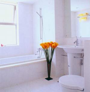 喜歡使用浴缸的人不必為避免空間擁擠而放棄對舒適的追求,只要選擇得當(dāng),也可以在一定程度上將空間善加利用。在4平方米的浴室中,你可以選擇半弧形的浴缸.正好也利用了邊角的空間,布局也相當(dāng)合理。另外,目前市場上有將淋浴房與浴缸結(jié)合在一起的衛(wèi)浴設(shè)備,既可以淋浴,也不耽誤泡澡的享受,絕對是節(jié)省空間的好方法。