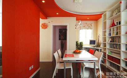 如在廚房中,主色應選白色或淺藍色,這樣的冷色會使人覺得涼爽些。為了不使人在冷色中陷入沉悶,故應以紅色、桔紅色為輔色才有利于使人進入較興奮狀態(tài),如在壁櫥門板上涂上這些顏色。再比如,陰面的房間及浴室應以暖色為主,如米黃色、淡粉色的墻飾,而輔助色可選白色、淡藍色、果綠色等等,如家具或窗簾。