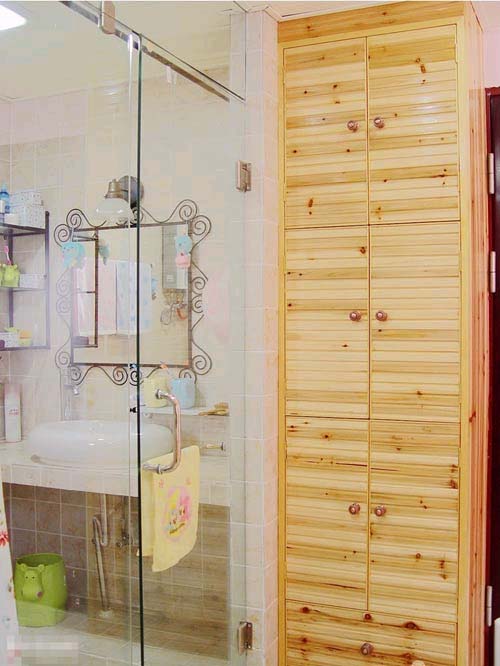 為了貯存一些衛(wèi)生用品,衛(wèi)生間常常設(shè)置柜櫥,或者在墻面上做壁柜。如果在柜櫥或凹槽的門面上安裝上鏡面,不僅使衛(wèi)生間空間更寬敞、明亮,而且豪華美觀,費(fèi)用也不貴,更可以與梳妝臺(tái)結(jié)合起來,作為梳妝臺(tái)鏡使用。
