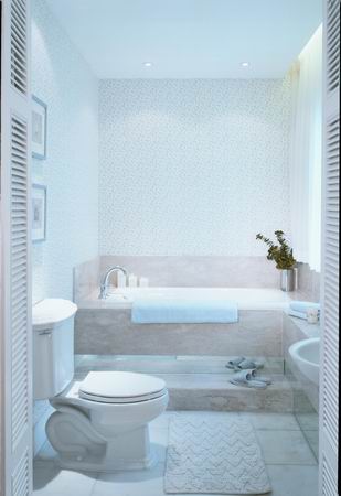 浴室地板最主要的考慮重點是防滑的處理,你一定也希望它看起來美觀,踩踏起來舒適。這里有許多選擇,各有其利弊。若以舒適為主要考慮,地毯是最受歡迎的選擇;但不抗潮濕,最好是采用專為浴室設(shè)計的橡膠底板的地毯。盡管如此還是偶爾會有異味的顧慮——特別是當(dāng)家里的小孩(大人也有可能漫不經(jīng)心)地將污水濺灑其上,最容易產(chǎn)生異味。