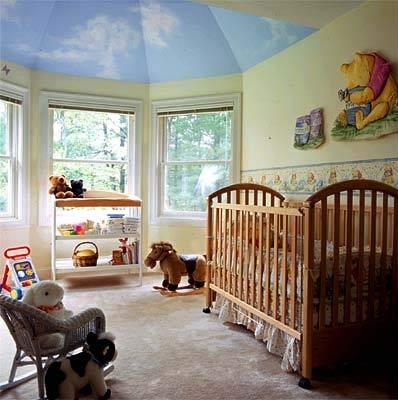 墻面:嬰兒房的裝飾裝修,墻面以環(huán)保型織物墻紙作裝飾比較好,既不怕圖畫,又易于清洗。
