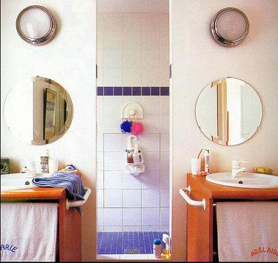 如果浴室沒有對(duì)外的窗戶,那堋可以在墻上掛面鏡子以形成一個(gè)想像空間。再者,鏡子能加速氣能的流動(dòng),對(duì)浴室而言,具有正面效果,因?yàn)樵∈易罴煽諝獠涣魍ā?