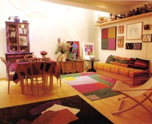 地面可以采用同樣的手法處理:用地毯、地板或其它地面裝飾材料,將整體飾以一種色彩,在此基礎(chǔ)上,小塊的幾何外形地毯,各種家具像是漂浮于色彩的海洋之上,如同一幅超現(xiàn)實(shí)的繪畫作品。
