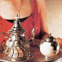 傳統(tǒng)設(shè)計(jì) 鍍銀青銅茶具 傳統(tǒng)設(shè)計(jì)的鍍銀青銅茶壺和托盤(pán),是摩洛哥人飲用傳統(tǒng)的薄荷茶時(shí)經(jīng)常使用的茶具。節(jié)日或任何一個(gè)親朋好友相聚的場(chǎng)合,這樣一套采用傳統(tǒng)工藝制作的茶具一定可以為聚會(huì)增添不少魅力。