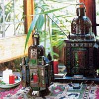 休閑角落 洋鐵臺(tái)燈 洋鐵臺(tái)燈,是代表摩洛哥風(fēng)格的又一種臺(tái)燈。鏤空、雕花,種種復(fù)雜的工藝用于洋鐵材料上,制作出來(lái)的是極具裝飾效果的別致臺(tái)燈,很有神秘感,可以放在陽(yáng)臺(tái)或其他休閑角落。