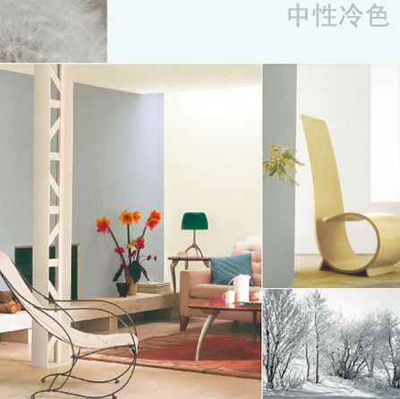 該組色彩集中體現(xiàn)在從白色到深黑色之間的各種柔和安靜的灰色之中——這些具有靈性的中性色彩,與其它色系中的各種顏色都可形成優(yōu)雅的對(duì)比。