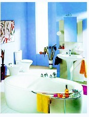 小面積的白色標(biāo)準(zhǔn)浴室,雖然衛(wèi)生,但對(duì)人的感官?zèng)]有刺激性,時(shí)間長(zhǎng)了就會(huì)令人感到索然無(wú)味,而顏色卻能排除這種單調(diào)性。所以說(shuō),給浴室選擇適當(dāng)?shù)念伾坏幸嬗谝暳?,而且還可以讓整個(gè)浴室生色不少。