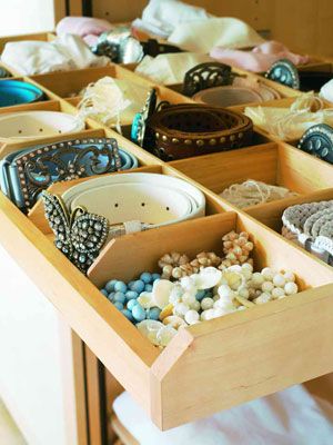你有沒(méi)有為放置自己各種各樣的皮帶和好久不用的小飾品苦惱過(guò)?那就試試這種衣櫥里的“魔術(shù)抽屜”吧。又大又淺的抽屜內(nèi)被分隔出許多小空間,正好可以容納卷起來(lái)的皮帶和各種小玩意。當(dāng)抽屜被推進(jìn)衣櫥,誰(shuí)也想不到那個(gè)小小的空間內(nèi)竟然還藏著那么多“寶貝”。