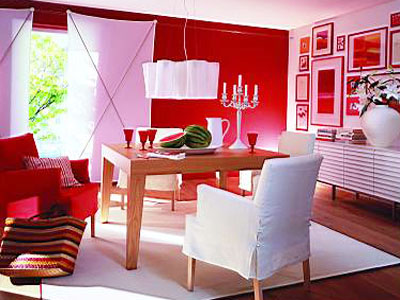 概要: 餐廳看起來好漂亮,精致的漂亮。餐廳以紅色和白色為主,看起來色彩分明,視覺效果很不錯。餐廳沒有采用普通的窗簾,而采用了日式風(fēng)格的窗簾,特別又漂亮。白色吊燈裝的也很有特色遠(yuǎn)遠(yuǎn)看起來像是朵很大的花,別致。白色的地毯與頂墻正好相呼應(yīng),這樣就不會有“頭重腳輕”的感覺了。白色的墻壁上掛滿了大小不一的畫,大多數(shù)還是以紅色為主整體搭配的巧妙。
