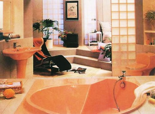 進入桑拿房的走廊一側(cè),一排磨砂玻璃打造的淋浴間,依然少不了花葉玻璃墻和低垂紗簾的陪伴。四周的燈光已經(jīng)昏暗了許多,完成了一處私密獨立空間的營造。