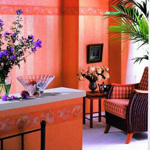 除了主流的紙質(zhì)壁紙外,最新上市的絲絨纖維壁紙一經(jīng)推出就大受歡迎。這種材質(zhì)的壁紙?jiān)诠麧{中加入了絲絨纖維,增加了壁紙的強(qiáng)韌度。撕開壁紙,你還會(huì)看到紙層間有絲絲縷縷的纖維線。纖維壁紙的優(yōu)點(diǎn)是立體感較強(qiáng),表面可印軋上各種花樣,且可以用濕布擦洗,十分耐用。