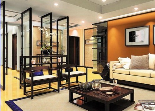 中式風格突出“禪”,現(xiàn)代風格突出“酷”,形成平和安詳與激烈尖銳的沖突。適度合理地處理好這種沖突,可以真正詮釋這類消費心態(tài)。在現(xiàn)代派常用的點、線、面相結合的情況下,以黑、白、灰為主色調,不銹鋼飾面為裝飾手段,往往可透露出一股“冷酷的情感”。在裝修過程中主要空間結構盡量減少曲面的形與態(tài),使直線交叉與層疊來營造出一個純現(xiàn)代的空間。在局部裝飾與色彩上穿插使用中式古典元素,如幾、條、案、椅、窗花;或藏青、赭紅等含有中式元素的飾物來進行裝飾。