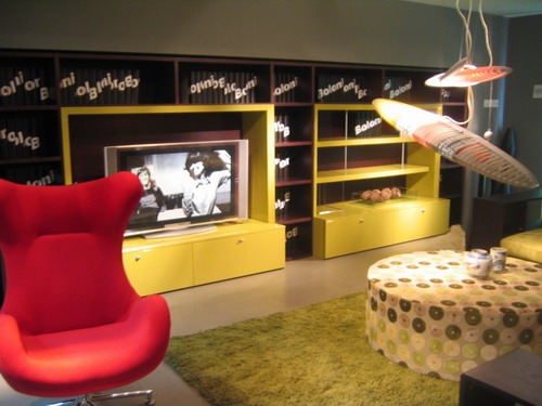 綠色是大自然賦予這個(gè)季節(jié)的顏色,家里也同樣適合選用,適當(dāng)?shù)木G色不僅能夠給居室?guī)?lái)生機(jī)和活力,同時(shí)也能也能起到很好的視覺(jué)調(diào)節(jié)作用。本案中,博洛尼設(shè)計(jì)師在采光欠佳的起居室中加入檸檬黃、大紅和果綠色,將灰暗低沉一掃而空。