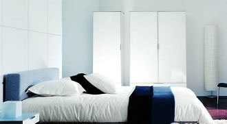 不知從什么時(shí)候開(kāi)始,人們?cè)诖采系纳钜呀?jīng)不限于睡眠的8小時(shí),那些滿足睡眠、娛樂(lè)甚至工作等功能的復(fù)合性床具增加了我們對(duì)臥室的依戀。所以臥室不在大,關(guān)鍵是以床為中心的舒適感和放松感。