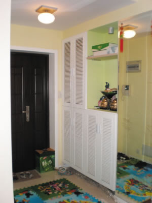 概要: 百葉門 慣用做法:采用百葉門。這是一般人家裝修玄關(guān)鞋柜的慣用手法,就算業(yè)主不主動說,十個木工有九個都會按照慣性思維做成百葉門。優(yōu)點:透氣性好,裝飾效果強。缺點:由于百葉是有縫隙的,鞋子放在里面很積灰,不干凈的鞋子擺里面,臭味會竄出來,如果客人來了,一進門就聞到不潔的味道,對這個家的印象分就會大打折扣。