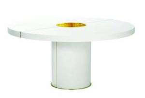圓形桌面,圓柱形桌腿,雖然造型稱不上令人過(guò)目難忘,但純凈的白色還是會(huì)讓人感到單純的可愛(ài)。桌面中央的中空軸內(nèi)壁用金光熠熠的馬賽克進(jìn)行了裝飾,這種不顯山、不露水的低調(diào)華貴絕對(duì)是整個(gè)茶幾最讓人感到驚艷的地方。