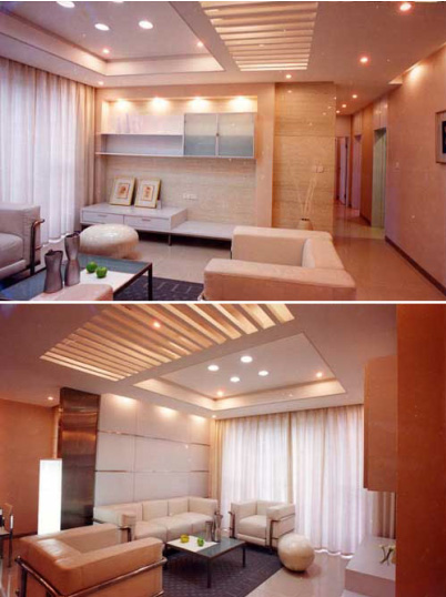 凹圓線吊頂:一般來(lái)說(shuō),凹圓線吊頂可以讓每面墻都呈現(xiàn)完美的弧度。它也能讓房間的周?chē)鷫Ρ诘墓案垢?,特別是柔光從上打下來(lái)的時(shí)候。由于有高度上的對(duì)比,即便沒(méi)有把吊頂抬高,拱腹也可以使吊頂?shù)闹虚g部分感覺(jué)更高。凹圓線吊頂涉及結(jié)構(gòu)變動(dòng),是很容易做的。