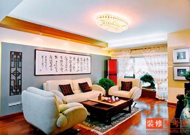做為客廳另一個視覺焦點(diǎn)的展示柜架與視聽柜自然銜接,形成視覺上的延伸。內(nèi)置式陽臺被納入客廳,一側(cè)墻面局部以不規(guī)則文化石加以點(diǎn)綴,營造出一個自然拙樸的休閑場所。眺望窗外美景,點(diǎn)染出悠游的情懷。而繞在空調(diào)管道上的裝飾綠葉,既掩飾了管線粗糙的外觀,更為整個房間帶來了生氣。窗戶用線條簡潔的紙質(zhì)百葉簾遮擋,為客廳帶來充足自然光,輔助了照明,也可隨意調(diào)節(jié)光線的強(qiáng)弱,與窗簾相比靈活性強(qiáng)了許多。