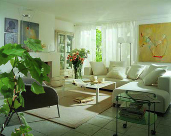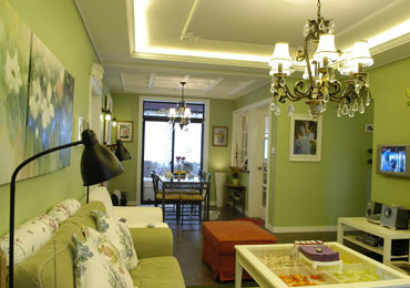 客廳:客廳作為待客區(qū)域,一般要求簡(jiǎn)潔明快,同時(shí)裝修較其它空間要更明快光鮮,通常使用大量的石材和木飾面裝飾;美國(guó)人喜歡有歷史感的東西,這不僅反映在軟裝擺件上對(duì)仿古藝術(shù)品的喜愛(ài),同時(shí)也反映在裝修上對(duì)各種仿古墻地磚、石材的偏愛(ài)和對(duì)各種仿舊工藝的追求上??傮w而言,美式田園風(fēng)格的客廳是寬敞而富有歷史氣息的。