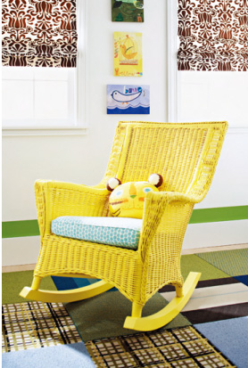窗前光線明亮,放置一把藤制搖椅,享受美妙的親子時光。