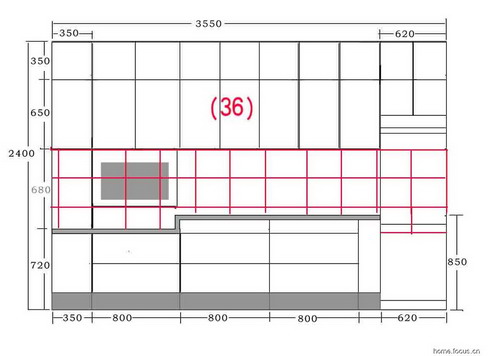 計(jì)算廚房磚可先在貼磚的墻面上排列一下,這樣雖然花費(fèi)時(shí)間,但測(cè)算出的用量比較確切,舉例說明我怎樣計(jì)算廚房磚的用量,一般買磚是論塊,比如22元一平米的白磚,規(guī)格要是330×250,就是每塊0.0825平米,合1.815元??磮D(瓷磚計(jì)算圖3):