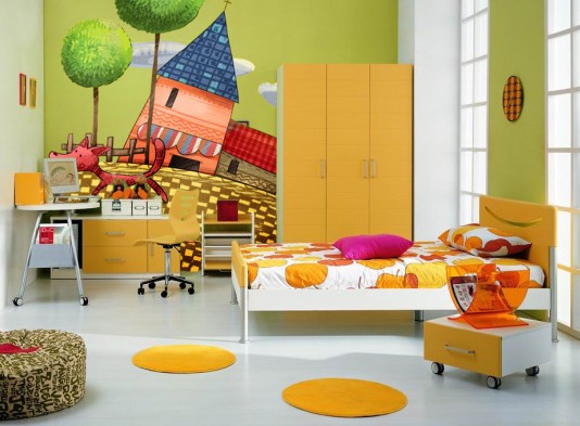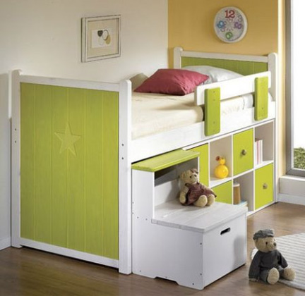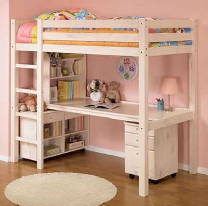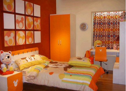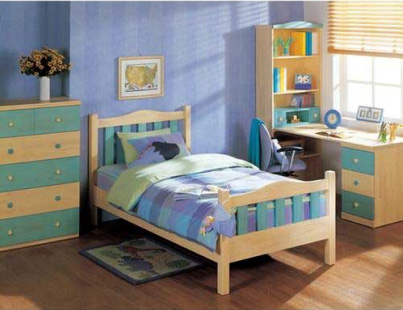 學(xué)齡前的房間中,為保證孩子的身體健康,兒童房中的家具都選用環(huán)保的實(shí)木家具,并鋪設(shè)實(shí)木地板。因?yàn)楹⒆幽挲g小,又好動(dòng),宜選用低矮的兒童床,以免孩子睡覺時(shí)“不老實(shí)”而翻下床。