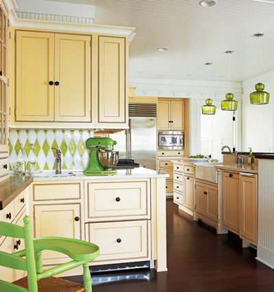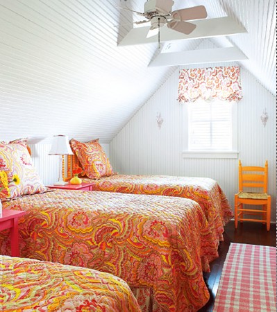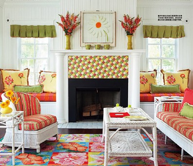壁爐和窗邊休息區(qū)都是原來(lái)老房子的客廳里所沒有的,廢舊的走廊立柱經(jīng)過(guò)翻新矗立在壁爐兩側(cè)客廳中,條紋沙發(fā)帶來(lái)海洋氣息,幾個(gè)花朵靠包巧妙地迎合了夏日的特點(diǎn)。而廚房則更具清涼感,白色的抽油煙機(jī)頂飾和明亮的手工燒制瓷磚驅(qū)走了夏日的炎熱,加高的小吧臺(tái)是特意為孩子們準(zhǔn)備的早餐臺(tái),餐具柜里的花樣瓷器巧妙地裝飾了廚房。休閑區(qū)中團(tuán)花似錦,無(wú)論是地毯、靠包還是裝飾花都被花朵簇?fù)碇?,坐擁其中,更像是在花園中體味馨香。臥室的布置相對(duì)簡(jiǎn)單,藍(lán)色和粉色為主的布藝在白色背景的襯托下顯得格外美麗。