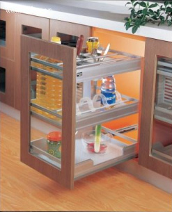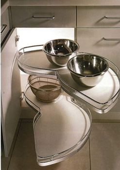 現(xiàn)今市場上的櫥柜、柜子與抽屜的配置各不相同,在大開門的柜子與大小抽屜的組合中,抽屜的作用是顯而易見的。一般來講,抽屜有最為合理的功能分區(qū),根據(jù)存放物品的不同,制作出隔板,其實用性也就在眼前一目了然了。當然櫥柜內(nèi)轉角的有效利用可是 大有文章可做。旋轉式網(wǎng)架是最富有創(chuàng)意、最科學的設計,他通常是利用櫥柜的死角,可以讓你充分利用有限的空間??梢栽谵D角櫥柜中安裝一個旋轉式網(wǎng)架,放置鍋具。使用時只需輕輕一轉,就可以拿到需要的物品,十分簡單方便。