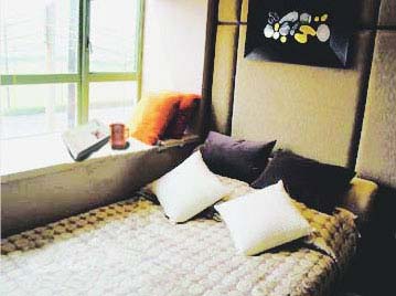 工作了一天,最希望找個(gè)地方懶散一下。這時(shí)候飄窗又可以派上用場。簡單的可以是軟軟的氈子(或折疊墊子)外加兩個(gè)特色的小抱枕。如果您的飄窗屬于大型轉(zhuǎn)角型的,先按窗臺的尺寸訂做個(gè)薄薄的布藝坐墊,并且用相同色系的方枕沿窗臺弧形排列作為靠背,最后再在中間擺上一張小茶幾。您可以在這張獨(dú)特的休閑飄窗躺椅上或冥想、聽音樂,或與三五友人品茶、聊天、打牌。