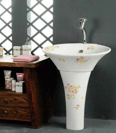柱盆也稱立式柱盆,立式柱盆是獨立的,下面有一只與盆體相配套的柱子。有時這根柱子并不承受面盆的的重量,只是為了遮蔽下水管道。由于占用空間較少,所以一般多用于面積較少的衛(wèi)生間。