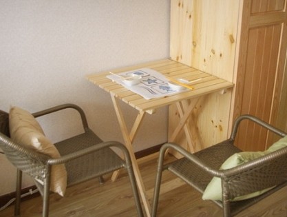 松木小桌,可以當(dāng)書桌辦公。