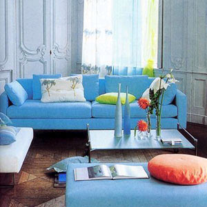 地中海風(fēng)格的三種典型顏色搭配:藍(lán)與白;黃、藍(lán)紫和綠;土黃及紅褐。