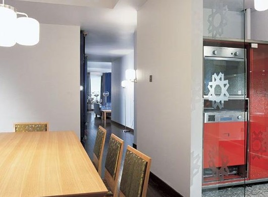 合理的設(shè)計(jì),利用它們之間的互相折射,在光源很少的情況下,也完全可以營(yíng)造出燈火輝煌的效果。例如在餐廳中,我們可以在墻面與天花上大面積安裝鏡子,選擇玻璃臺(tái)面餐桌。這樣,不但使空間視覺變大,而且當(dāng)燈打開時(shí),經(jīng)過鏡子的層層反射,燈光會(huì)成倍增長(zhǎng),空間更加絢麗奪目。不銹鋼制品的功能與鏡子相同,但更適合局部空間的小點(diǎn)綴。