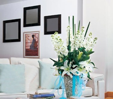 宜以白色和銀色為主,忌紅色,數(shù)目最好是四盆或者九??蛇x擇白蘭、九里香、銀佳、福建茶、金百合、含笑、米蘭、金桂和金銀花等。