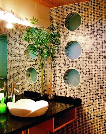 布局:用珠簾、紗幔將洗漱區(qū)與沐浴區(qū)隔開(kāi),這樣的干濕分區(qū)簡(jiǎn)單、浪漫。如果衛(wèi)生間有窗戶,可將浴缸與衛(wèi)浴間的小家具呈“L”型布局,流線形、圓形、橢圓形的浴缸擺放在窗戶正下方,儲(chǔ)物架對(duì)稱地豎立在盥洗臺(tái)兩邊,留出寬敞的沐浴區(qū)。