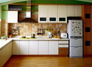 裝修廚房時的一個整體原則就是簡約,風(fēng)格切忌雜亂。直線條的現(xiàn)代風(fēng)格是最好的選擇,簡單明快的線條讓人一目了然,減輕視覺壓力;廚房的色彩一定要單一簡潔,可以高調(diào)也可以淡雅,色彩上也允許略有變化,但無論如何一定要保持色調(diào)的統(tǒng)一,而且要避免過于艷麗花俏。最理想的色調(diào)是單色調(diào)、淺色系,如白色、淺灰色或明亮的奶黃色、淺藍色等,不但明快,而且有擴大空間感的效果。