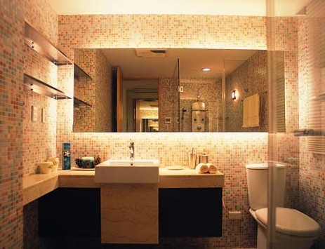 在鏡面上安裝壁燈照明效果比較好。在洗臉盆的附近上方,還可以安上可插式電插座,供吹風(fēng)機(jī)、刮須器器具使用,要注意的是插座上應(yīng)有防水蓋板。