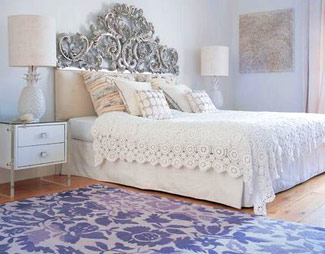 在房間的某個區(qū)域鋪一張小地毯,可以營造更和諧統(tǒng)一的效果。不過要注意,地毯的長度一定要超過床的寬度,并且延伸到家具旁邊,否則就會讓臥室顯得更小。